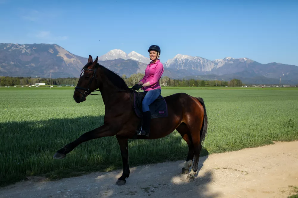 Urška Klakočar Zupančič s svojim konjem. Foto: Bojan Velikonja