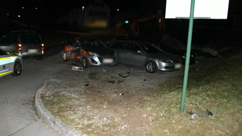 Prehiter voznik je bežal pred policijo, ustavil se je šele po trku v prometni znak in dva parkirana avtomobila.