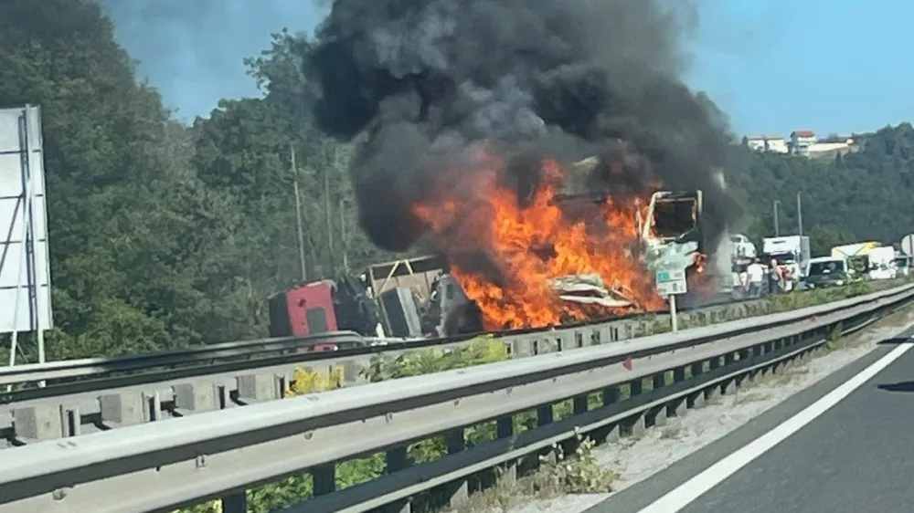 🚦🚧Zaprta je ljubljanska obvoznica med priključkoma LJ-jug in Rudnik proti KP, zaradi gorečega tovornjaka.