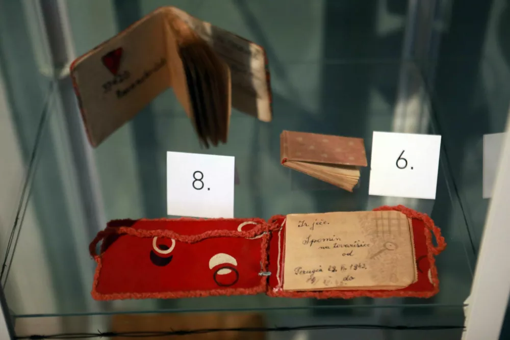Na razstavi so muzejski predmeti predstavljeni po tematskih sklopih, od srčkov s pripisi in posvetili matere sinu, ljubljeni osebi, tete nečakinji ali preostalim zapornicam do šatulj in spominskih knjig ter zapisov in predmetov za kajenje kot tudi različnih iger, med njimi kart, domin in šahovskih figur. »Spominske knjige so tudi pomemben raziskovalni vir. Tako je na primer v tovrstnih zapisih iz koncentracijskega taborišča Ravensbrück v zadnjih mesecih pred osvoboditvijo mogoče prebirati vedno bolj optimistične zapise,« je razložila Monika Kokalj Kočevar. Poleg spominskih knjig in zapisov, je nadaljevala, so iz taborišč neredko ohranjene tudi kuharske knjižice, v katerih so zapisi različnih receptov in celotnih jedilnikov, prirejenih za vojne razmere. Zato je v njih veliko jedi recimo s krompirjem in manj z mesom. »Hrana je bila v taboriščih, v razmerah velikega pomanjkanja in lakote, pogosta tema. Eden od taboriščnikov Dušan Štefančič mi je večkrat dejal, da so se v razmerah, kjer so se vsak dan borili za preživetje, pogosto pogovarjali, češ, 'kaj bomo pa danes jedli', in si ob tem zamišljali razne jedi,« je povedala kustosinja. Na aktualno razstavo v zgodovinskem muzeju je vključila tudi sliko Bogdana Borčiča Pismo materi, ki jo je muzej lani odkupil. Del umetnine je avtorjevo pismo iz Dachaua. Delo je nastalo po letu 2002, ko je bil Borčič povabljen, da kot preživeli taboriščnik razstavlja v spominskem muzeju nekdanjega nacističnega taborišča Dachau.