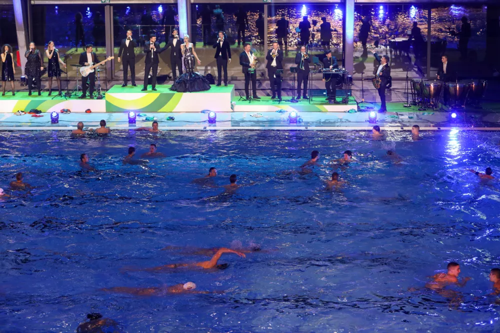 Prvi plavalci so že na otvoritveni slovesnosti preskusili olimpijski bazen.
