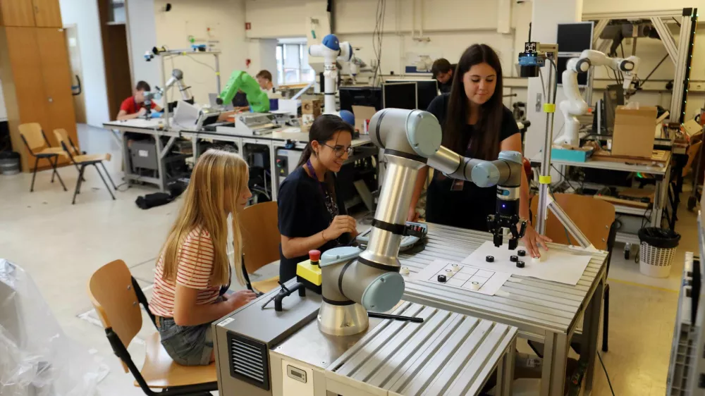 Z roboti so se ukvarjali tudi na delavnici Robotski izziv, kjer so se zgledovali po študentskem tekmovanju Hekaton. »Na fakulteti se enkrat med šolskim letom organizira tekmovanje Hekaton, kjer podjetja postavijo neki izziv, študentje pa ga potem tri dni rešujejo. Dobili smo idejo, da bi tudi mi lahko otroke razdelili v dve skupini, ker imamo na voljo dva robota, in jim predstavili izziv, ki bi ga v skupinah reševali,« je idejo pojasnila mentorica Maruša Petrovčič. »Najprej se v dveh uvodnih dneh spoznajo z roboti in kamero, torej usvojijo osnove. Potem se lotijo manjših nalog, zadnja dva dni pa rešujejo glavni izziv. Ves čas jim nudimo lastno znanje in svetovanje,« je dodala sogovornica. Z delom po skupinah spodbujajo tako tekmovalni kot skupinski duh, saj izziv vključuje več nalog in se lahko vsakdo loti tiste, ki ga najbolj zanima. Eno od skupin so sestavljale tri prijateljice, ki so s pomočjo robota igrale igro križcev in krožcev. »Robot pobere enega od simbolov in ga premakne na novo mesto,« je povedala 15-letna Sara, ki je tabor že večkrat obiskala. »Zanimajo me roboti, zato sem se v preteklosti že prijavila na delavnice, povezane z njimi. Prejšnje leto sem sodelovala na delavnici Lego Mindstorms, leto pred tem pa na delavnici Bluethooth zvočnik,« je še dejala Sara.
