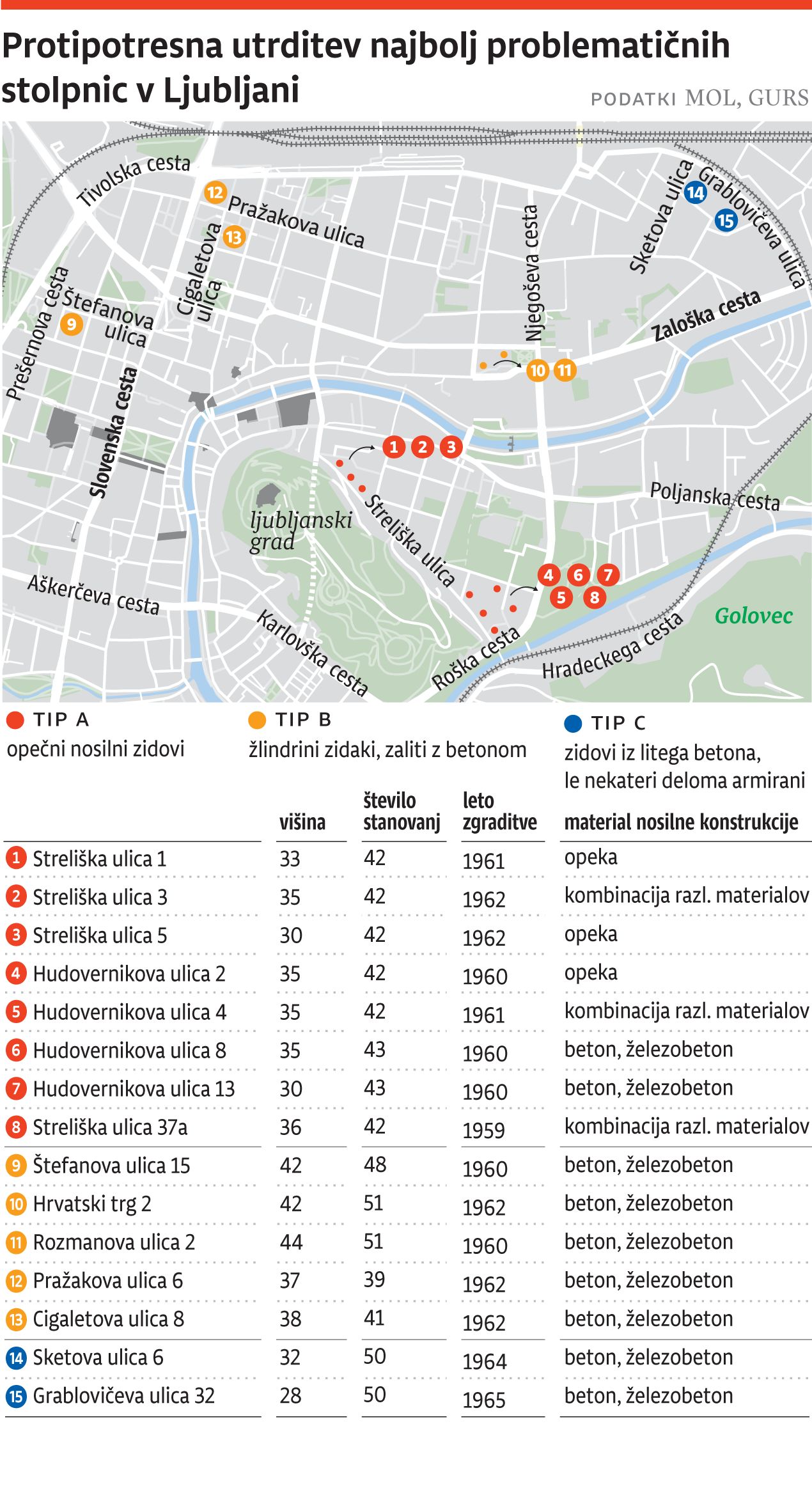»Po drugi svetovni vojni je množičnejša uporaba jekla in cementa oziroma armiranega betona omogočila gradnjo višjih stavb z vitkejšimi elementi, ampak znanja o potresnem inženirstvu ni bilo toliko, da bi vedeli, do katere višine in s kakšnimi detajli lahko s takratno tehnologijo gradimo,« je problem predstavila Marjana Lutman, vodja odseka za stavbe in potresno inženirstvo pri Zavodu za gradbeništvo Slovenije, ki je skupaj z arhitekturnim birojem Krištof in filozofsko fakulteto partner pri 110.000 evrov vredni raziskavi potresne odpornosti zidanih stolpnic.