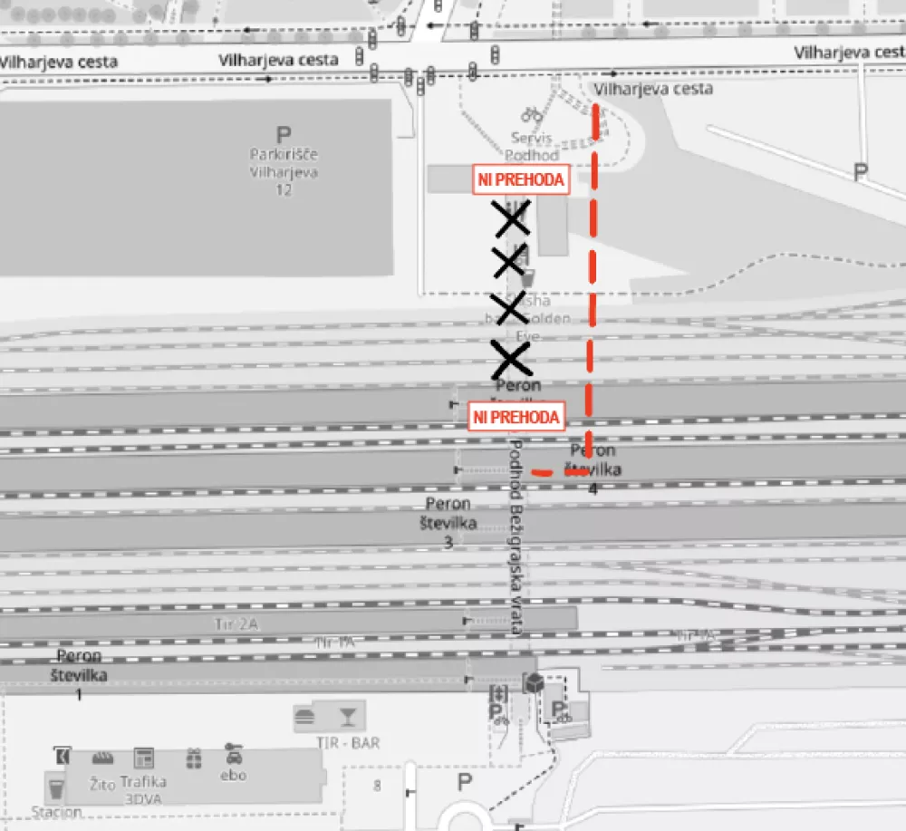 Čeprav je obvozna pot za pešce urejena, pa nekatere zapora podhoda zmede in ne vedo, kam točno morajo. Zato velja še enkrat poudariti, da je obvozna pot urejena po stopnicah, ki vodijo na peron oziroma tir številka 10 in nato po začasnem koridorju proti Vilharjevi cesti. To pot načeloma lahko uporabljajo tudi kolesarji, vendar morajo upoštevati, da na stopnišču ni urejene klančine za kolesa, zato bodo ta morali nositi po stopnicah. Osebe z omejeno mobilnostjo, ki želijo prečkati podhod, morajo to predhodno sporočiti Slovenskim železnicam na na telefonsko številko 01 291 33 91 ali na elektronski naslov info@slo-zeleznice.si, da jim lahko zagotovijo dostop.