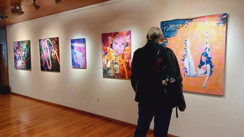Svoja likovna dela so na ogled postavili štirje člani Likovnega društva Kranj (LDK) – Zveze društev slovenskih likovnih umetnikov (ZDSLU): Andreja Srna, umetnica, ki je prejemnica številnih nagrad in priznanj na slikarskih natečajih in ki ustvarja v Bevkah in Radovljici, Domen Dimovski, vizualni umetnik, ki se ukvarja z digitalno grafiko, animacijo, videom in slikarstvom, Meta Šolar, ki je znana po figuraliki z nadrealističnimi elementi, ter Zmago Puhar, slikar, grafik in likovni pedagog, čigar opus obsega več kot 60 samostojnih razstav po Evropi in v New Yorku.