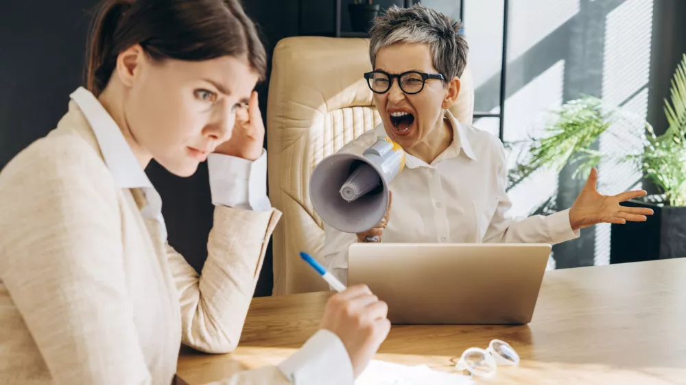 Sodelavka je zamudila rok za oddajo poročila, kar pomembno vpliva na projekt. Zdaj morda ne bo mogoče počrpati vseh sredstev. Ko je vodstvo to opazilo, je sodelavki, ki je naredila napako, za začetek namenilo nekaj zmerjanja: »Krava neumna, nesposobnost na višku, možganožerka ti je očitno pojedla še tisto malo, s čimer lahko misliš« ipd.