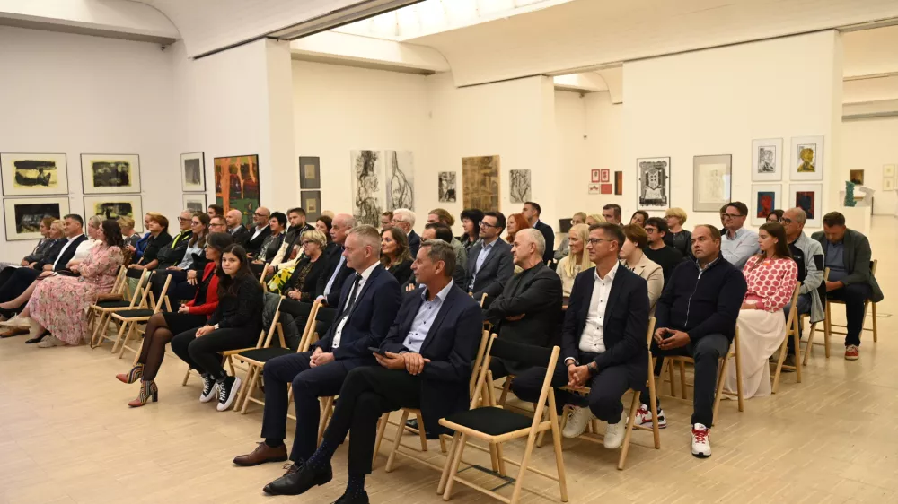 Dogodek je gostila Koroška galerija likovnih umetnosti, med udeleženci pa so bili med drugim tudi dvakratna olimpijka Tjaša Oder Prodnik, zaposlena v nominiranem podjetju Hermine Wech - Koroška perutnina, ter direktorja podjetja MG Rohr, regijske gazele 2021, Matej Natlačen in Samo Jenič. Foto: Nik Erik Neubauer