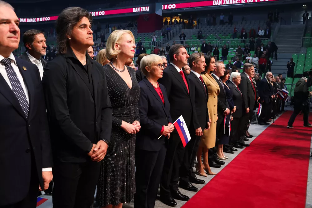 Državne slovesnosti, ki je potekala v Stožicah, se je udeležil ves državni vrh. Poleg premierja s partnerko Tino Gaber še predsednica republike Nataša Pirc Musar s soprogom Alešem Musarjem, predsednica DZ Urška Klakočar Zupančič s partnerjem Borom Zuljanom, člani vladne ekipe, nekateri poslanci in predstojniki državnih organov, tudi nekdanji predsedniki republike ter drugi visoki gostje političnega in družbenega življenja. Prisotnih je bilo tudi več bork in borcev narodnoosvobodilnega boja.