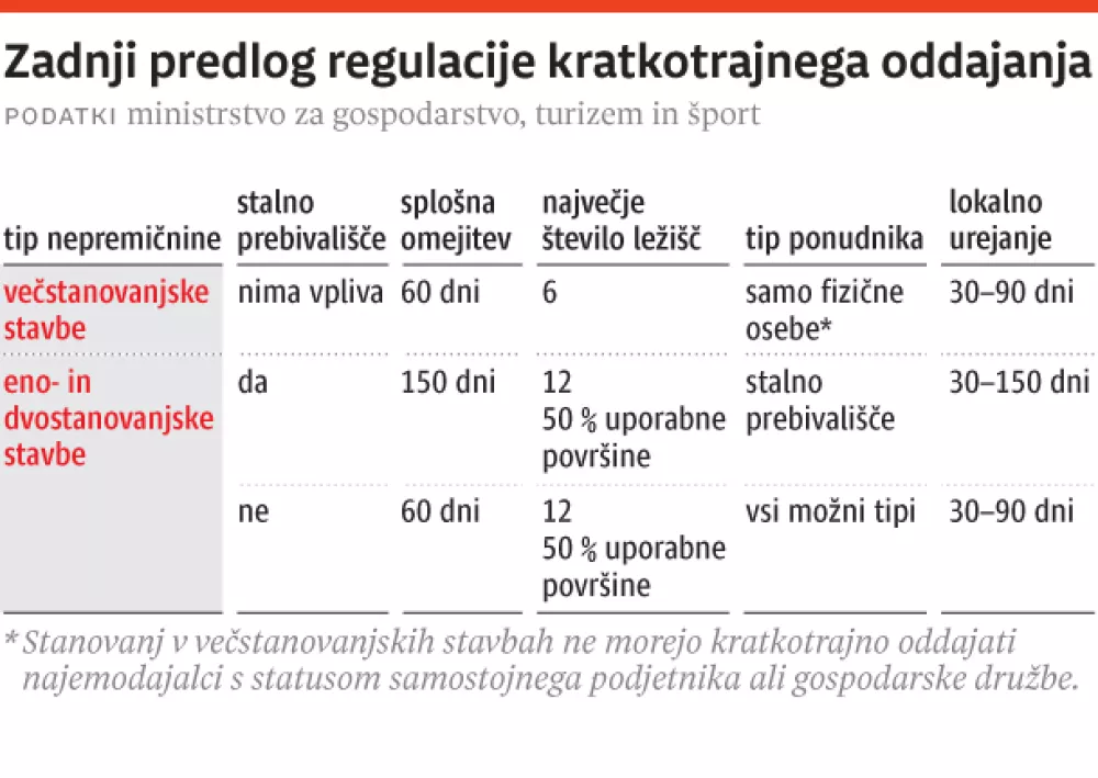 V večstanovanjskih stavbah bo pogoj za oddajanje 75-odstotno soglasje etažnih lastnikov in soglasje vseh mejnih etažnih lastnikov, ki bo veljalo tri leta, oddajale pa bodo lahko le fizične osebe (in ne s. p.-ji ali pravne osebe).