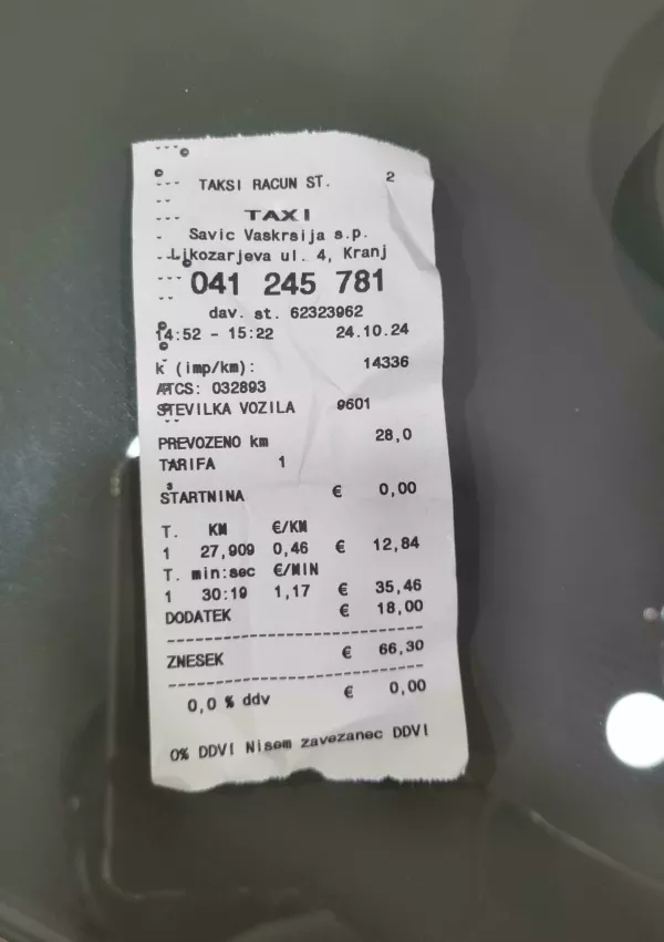 Toliko je namreč plačala stranka, domnevno turist, ki se je peljal z letališča Jožeta Pučnika do centra Ljubljane. Račun je objavil na omrežju reddit z vprašanjem, ali so ga morda opeharili. Uporabniki strani so potrdili: račun je previsok.