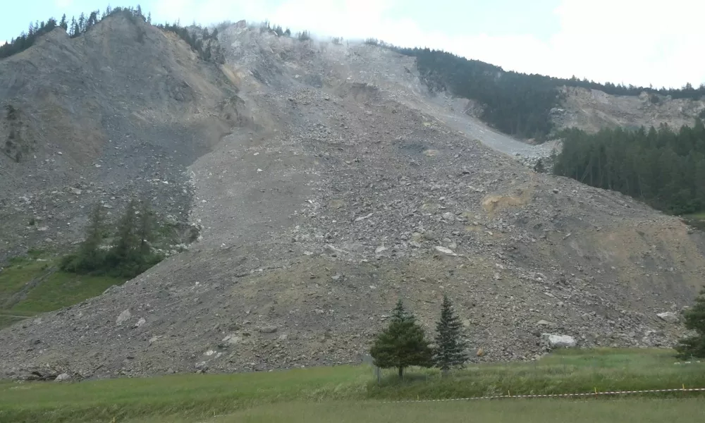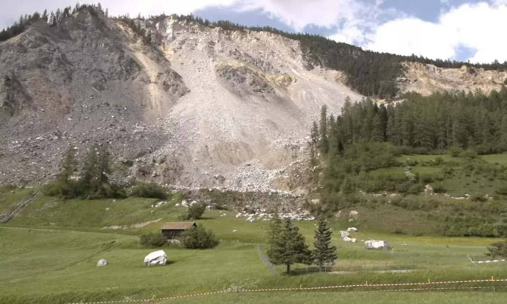 Po navedbah oblasti v kantonu Graubünden na vzhodu Švice bi lahko v dolino zgrmelo do 1,2 milijona kubičnih metrov skal, ki bi dosegle naselje.