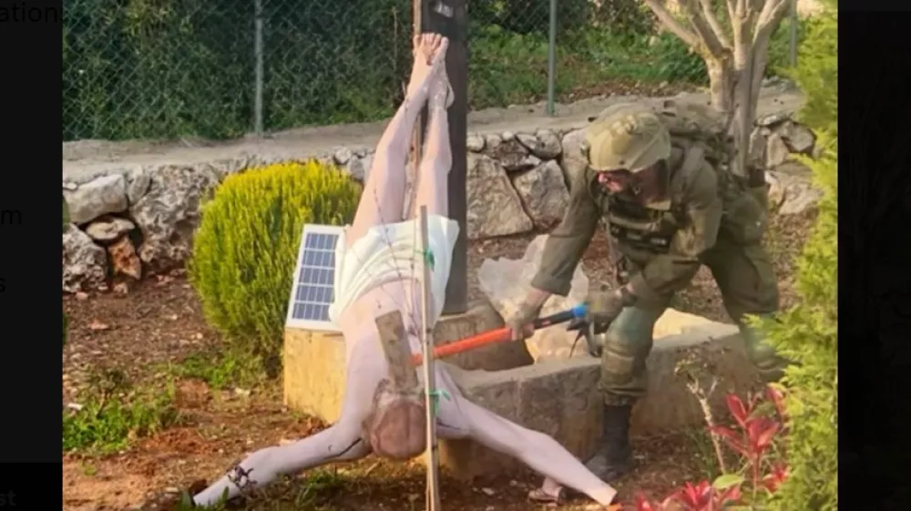 Izraelska vojska je potrdila pristnost fotografije, ki je zakrožila na družbenih omrežjih in prikazuje izraelskega vojaka v južnem Libanonu, kako s kladivom udarja po kipu Jezusa Kristusa, ki je padel z lesenega križa.