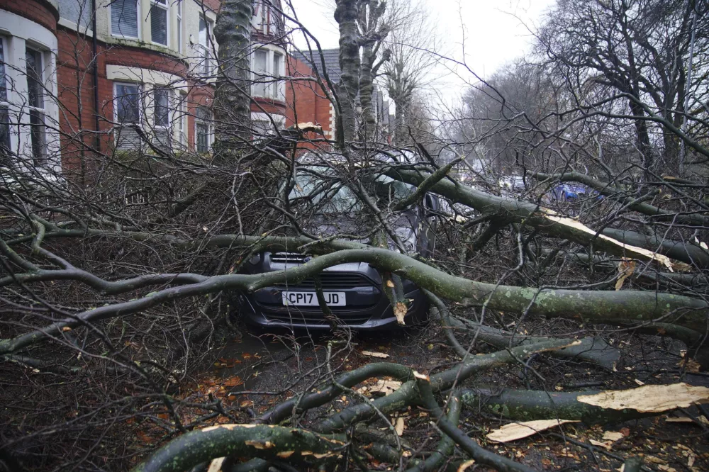 Britanski meteorološki urad je izdal rdeči alarm zaradi močnega vetra, ki je v nočnih in jutranjih urah zajel dele Walesa in jugozahodne Anglije. Vlada je tri milijone ljudi, ki živijo na tem območju, v petek zvečer s sireni podobnim opozorilom na telefonih opozorila, naj ostanejo v zaprtih prostorih. Poslovni minister Jonathan Reynolds pa je danes za televizijo Sky News razmere označil kot zahtevne in pozval prebivalce, naj upoštevajo nasvete.