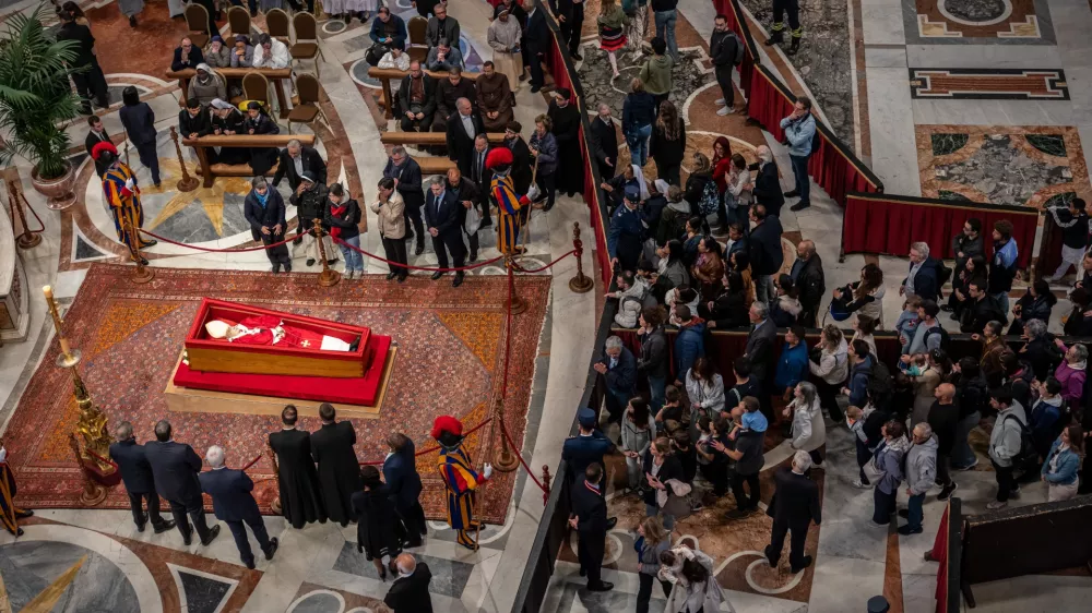 Najmanj 250.000 vernikov in drugih z vsega sveta, katerih src se je dotaknil papež Frančišek, pričakujejo na papeževem pogrebu. Med njimi bo vsaj 130 tujih političnih delegacij, približno 50 voditeljev držav oziroma vlad – Slovenijo bosta zastopala predsednica države Nataša Pirc Musar in predsednik vlade Robert Golob – in deset monarhov. Z vsega sveta bodo prišli tudi predstavniki Katoliške cerkev in drugih cerkva, v imenu Slovenske škofovske konference njen predsednik, novomeški škof dr. Andrej Saje.
