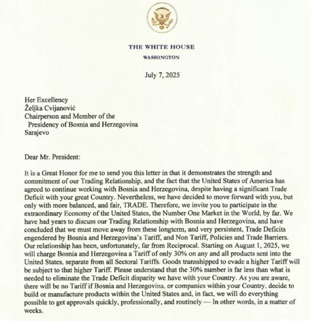 A si je v pismu, namenjenem predsedujoči tričlanskemu predsedstvu Bosne in Hercegovine Željki Cvijanović in ki ga je objavil na svojem profilu na družbenem omrežju Truth Social, privoščil grob diplomatski spodrsljaj. Začel ga je namreč z besedami Spoštovani gospod predsednik.