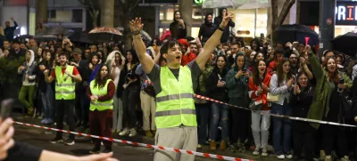 Po celem mestu se srečujejo delegacije študentov, ki se premikajo proti svojemu cilju.