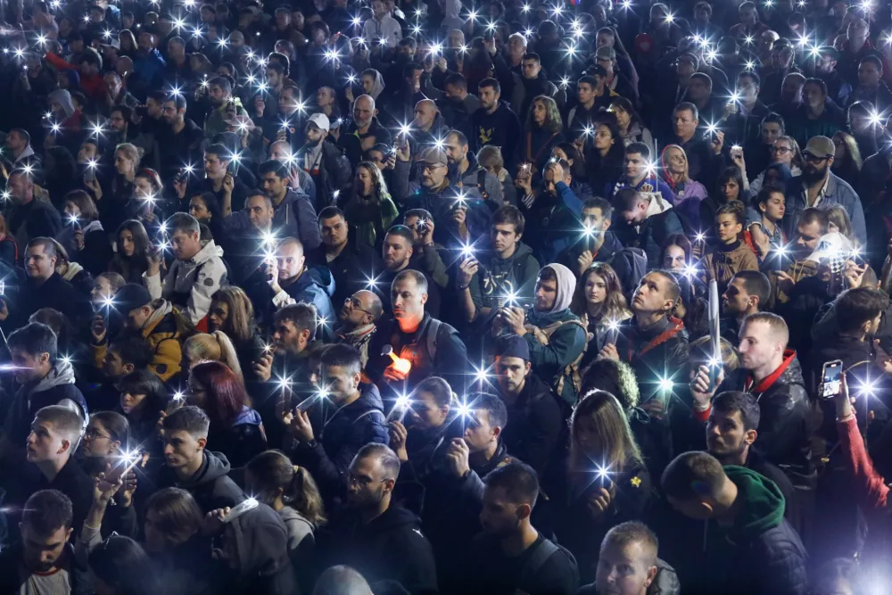Na trgu Slavija se je začel osrednji program današnjega protestnega shoda. Po številnih nagovorih in glasbenih točkah bo ob 19h 15-minutna komemoracija v tišini v spomin na žrtve rušenja nadstreška v Novem Sadu. Ob 20h pa načrtujejo "Največji hrup v Srbiji". Organizatorji predvidevajo, da se bo shod zaključil okoli 21. ure.