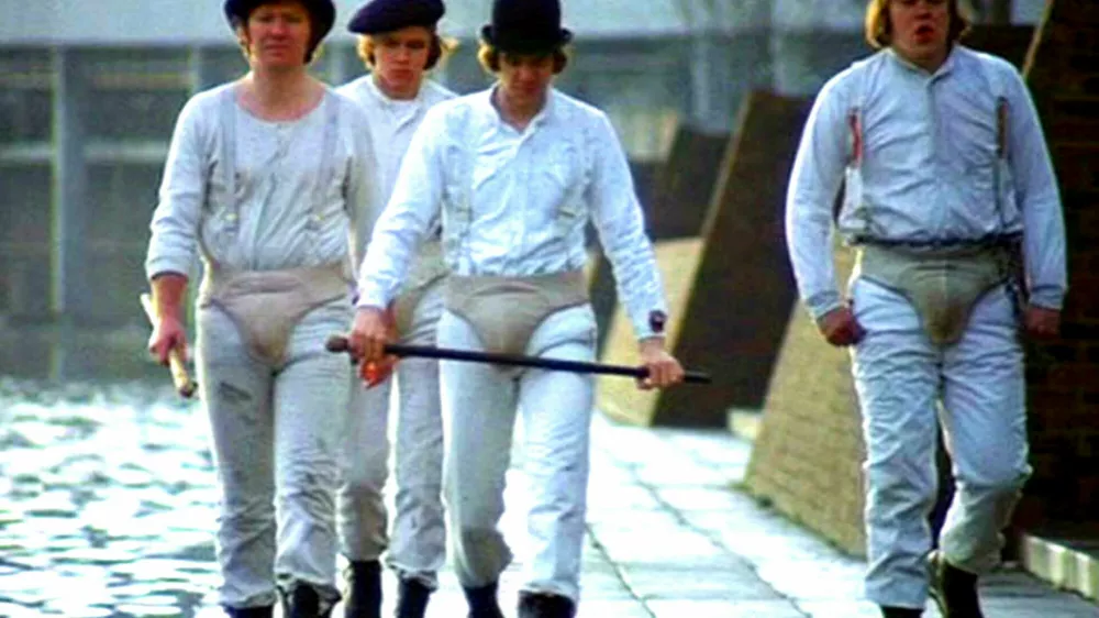 V šestdesetih in sedemdesetih je mladina brala distopični roman A Clockwork Orange, ki ga je leta 1962 napisal angleški pisatelj Anthony Burgess. Enega najnasilnejših filmov tistega časa je posnel Stanley Kubrick, motenega nasilneža je igral Malcolm McDowell v eni svojih najboljših vlog. Film, ki naj bi bil vzor mnogim nasilnim prizorom in celo ubojem na Otoku, je bil praktično povsod najprej prepovedan, potem pa so ga začeli vrteti v originalu ali pa malo skrajšanega. Dobil je nekaj nominacij, nobene večje nagrade, zaslužil pa je stokrat več, kot so vanj vložili.