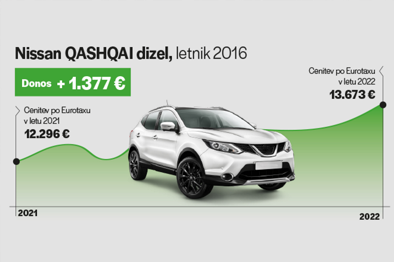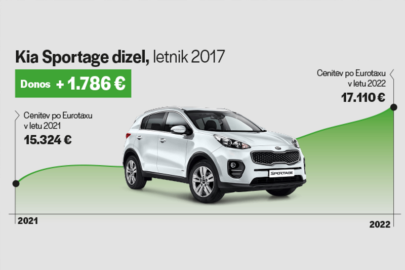 Zato je nakup vozila danes premišljena oblika investicije. Če se torej sprašujete, kako obogatiti vrednost svojega denarja, je ena dobra možnost na dlani. Da bo stvar še bolj jasna in preverljiva, vam v grafiki na primeru rabljenega vozila prikazujemo, kako je v preteklem obdobju rasla njegova cena.