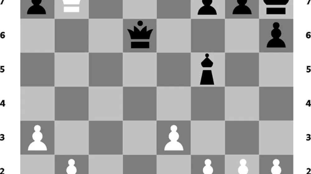 (diagram) 22.… Dc7! Beli se je vdal, saj na jemanje kraljice matira Sb3.