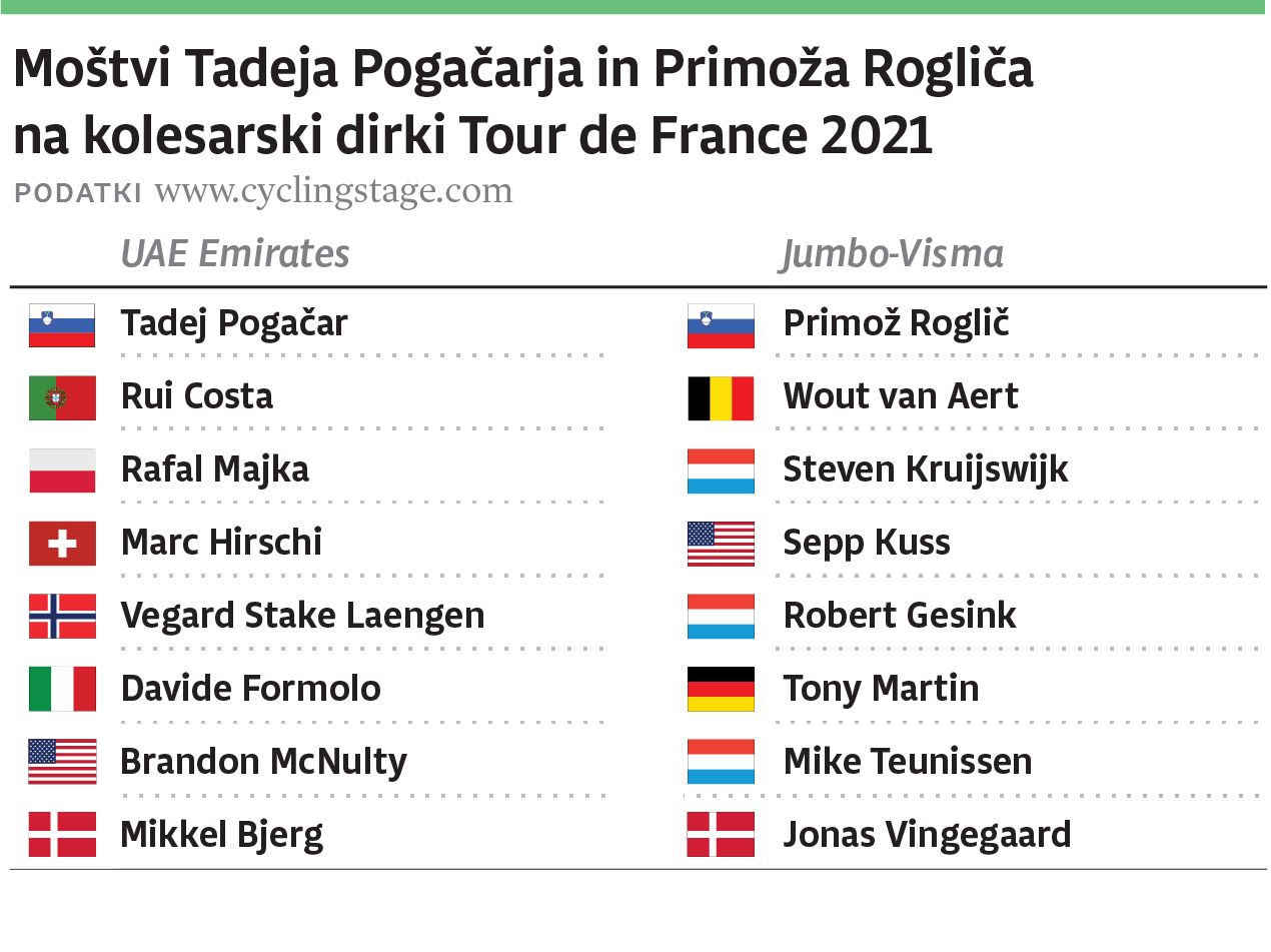 Bonča poudarja, da je pri uspehih vsakega kolesarja najpomembnejša ekipa. »Takšen scenarij, kot smo mu bili priča na lanskem Touru, je v kolesarstvu redkost. Tadej Pogačar je osvojil dirko po Franciji praktično brez pomoči celotne ekipe, bolj na krilih posameznikov, med katerimi je izstopal tudi Jan Polanc. Letošnja ekipa UAE je na papirju precej boljša kot lanska. Po drugi strani me Rafal Majka na dirki po Sloveniji ni navdušil. Ali njegova forma ni najboljša ali pa se povsem posveča Touru. Da se Marc Hirschi ne bi povsem posvetil Tadeju Pogačarju, me nikakor ne skrbi. Švicar ni tip kolesarja, ki bi lahko v generalni razvrstitvi posegel med najboljšo trojico, gotovo pa ga bo zanimala kakšna vrhunska etapna uvrstitev. Če bo dobil dovoljenje ekipe za napad, ga bo seveda izkoristil. Podrobno sem na dirki po Švici opazoval tudi Jumbo-Vismo. Ekipa me ni prepričala, saj je bila povsem v senci Ineosa. Zdeli so se mi precej izgubljeni, kot bi dirkali vsak zase. Toda po drugi strani tudi verjamem, da so se povsem osredotočili na Tour in zakonitosti tritedenskih dirk, ki so poglavje zase,« je zaključil Valter Bonča.