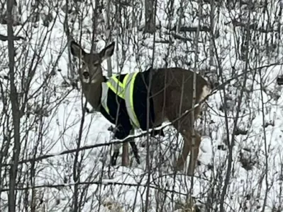 Se pretvarja, da je lovec? Po gozdu hodi v odsevni jopič oblečen jelen
